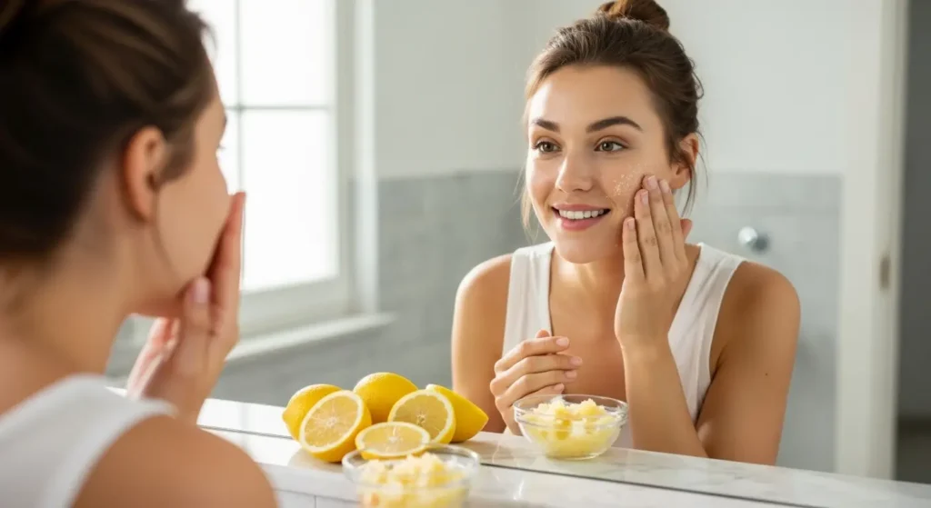 This natural scrub is perfect for sloughing off dead skin cells and promoting a brighter complexion. Sugar provides exfoliation, while lemon’s citric acid offers mild brightening properties.