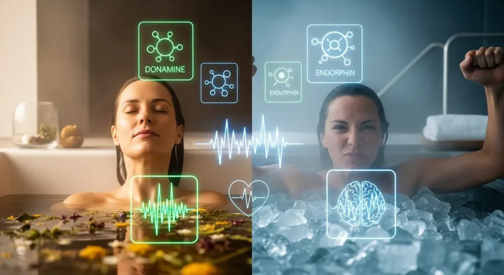 Warm water immersion activates the parasympathetic nervous system, reducing cortisol and increasing serotonin and dopamine levels. Japanese ofuro practices, with water temperatures between 104–108°F, have shown lower anxiety and depression rates among regular practitioners.