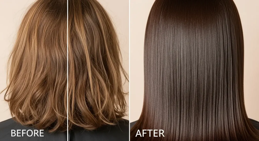 It smooths the hair cuticle, the outer layer that protects each strand. Smooth cuticles reflect light better, creating natural shine. They also prevent moisture loss and breakage.