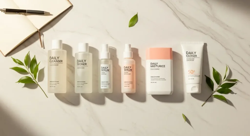 - Treat: Target concerns like acne or pigmentation using serums with ingredients like vitamin C, hyaluronic acid, or retinoids.
