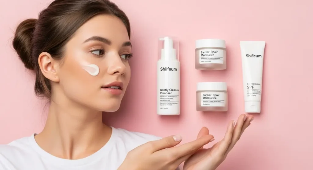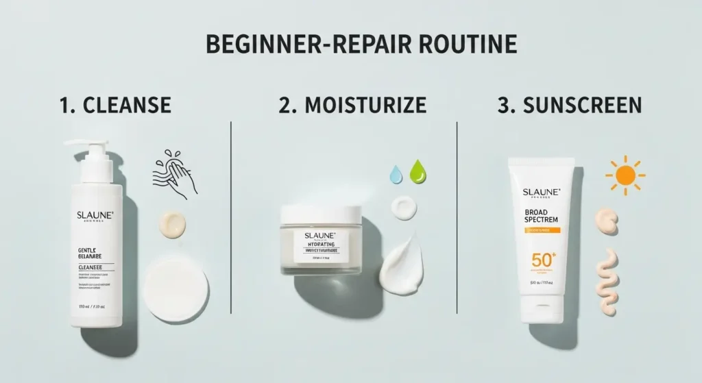 Start with a mild cleanser that doesn’t leave your skin feeling tight. Add a moisturizer containing ceramides or niacinamide. Use sunscreen daily to prevent further damage.